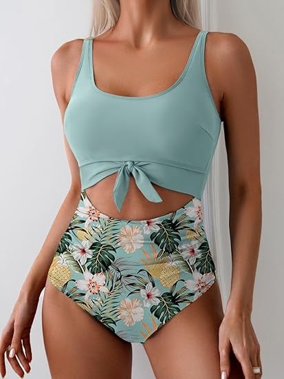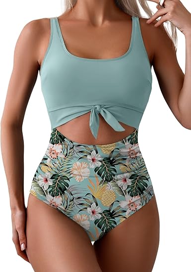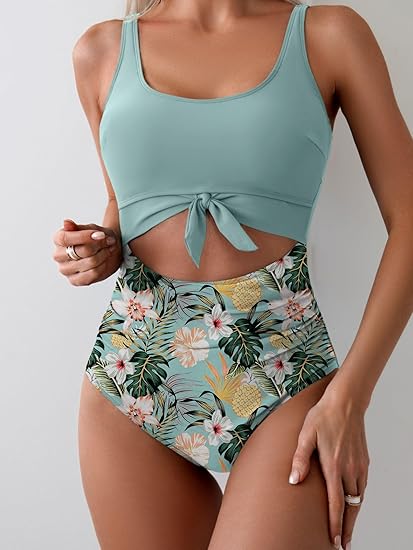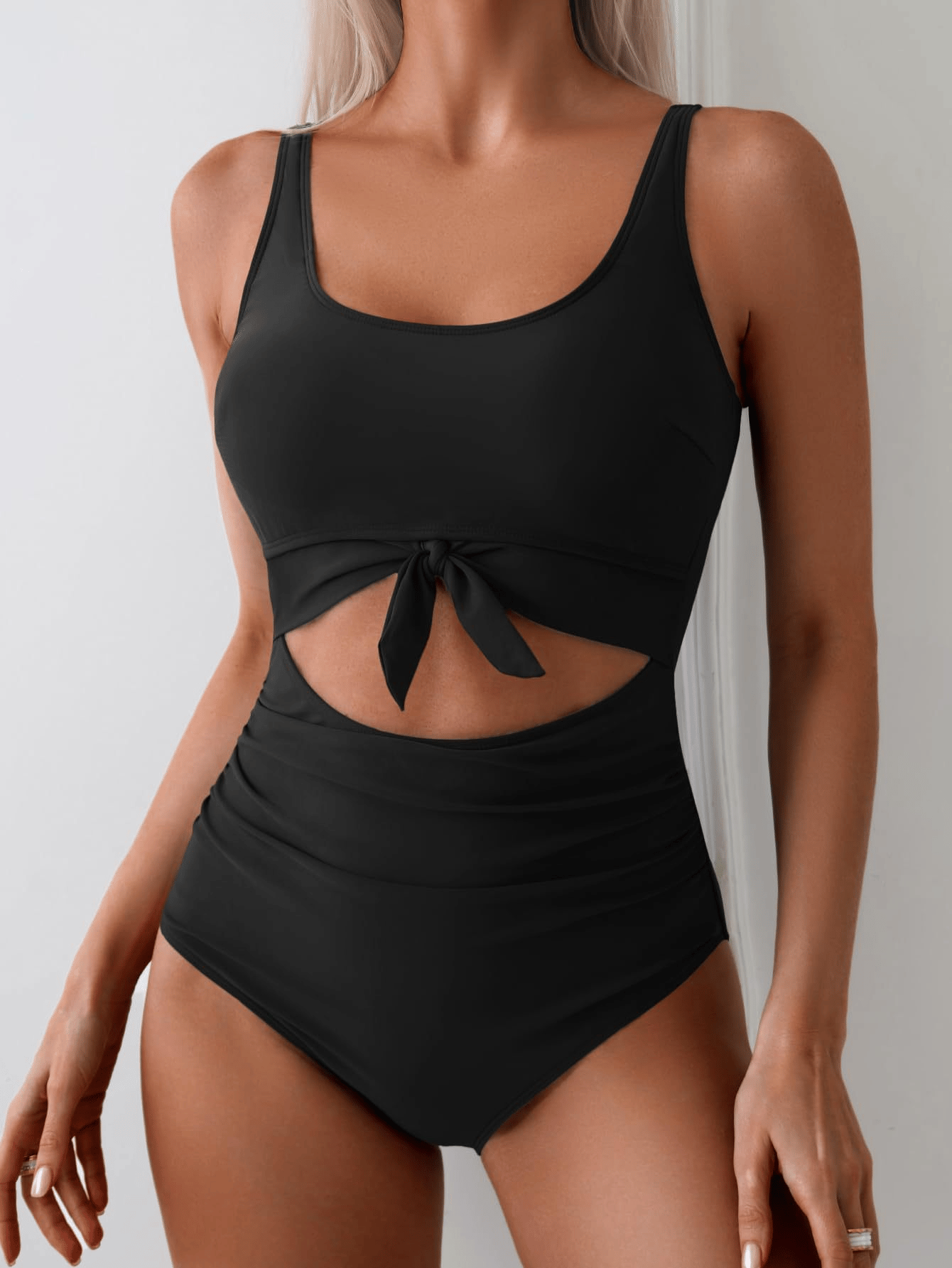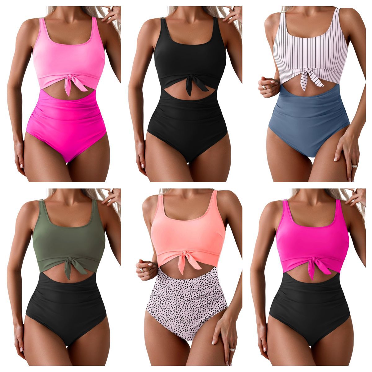 Dieser Badeanzug besteht aus einem Stück und verfügt über einen verstellbaren, ausgeschnittenen Bindeknoten vorne, der Ihre perfekte Taillenform betont und für einen klassischen und eleganten Look sorgt.
