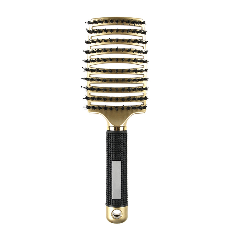 Diese Haarbürste aus Borsten und Nylon trocknet schnell und ist leicht zu reinigen. Der rutschfeste Design-Gummigriff liegt bequem in der Hand. Es kann Ihren Kopf während des Kämmens massieren, warum versuchen Sie es nicht?
