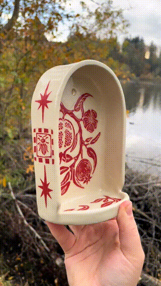 Von Hand geformt und mit symbolischen Designs bemalt, sind diese Keramiknischen mehr als nur Dekoration â sie sind stille Begleiter fĂŒr Reflexion, Ritual und Schönheit.
