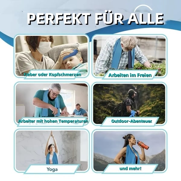 Ob beim Sport, bei der Arbeit im Freien, auf Reisen oder im Alltag – dieses kühlende Handtuch passt sich all Ihren Bedürfnissen an. 🏃♂️🚴♀️⛺️