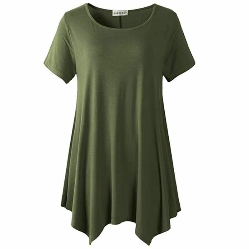 Taschentuch Saum macht dieses Sommer-T-Shirt schön.