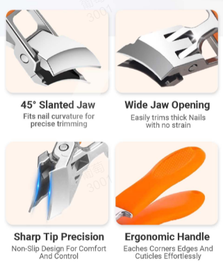 BREITE MAULÖFFNUNG: Die großzügige breite Maulöffnung nimmt mühelos dicke Nägel auf und ermöglicht es Ihnen, sowohl Finger- als auch Zehennägel mühelos zu schneiden, ohne Quetschen oder Anstrengung.