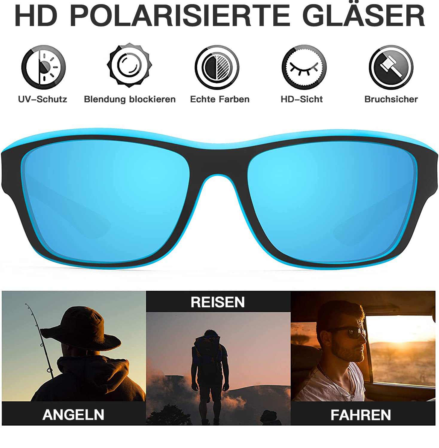 🕶【TAC Polarisierte Gläser】99% UV400-Schutzbeschichtung, blockiert 99% der schädlichen UVA- und UVB-Strahlen und schützt die Augen perfekt. Die TAC-Linse besteht aus 7 Schichten. Die 1. Schicht ist eine Polaroid-Schicht. Die 2. und 3. Schicht sind Klebeschichten, die Haltbarkeit ermöglichen. Die 4. und 5. Schicht sind UV-Schutzschichten zur Absorption von UV-Licht. Die 6. und 7. Schicht sind bruchsichere Schichten.
