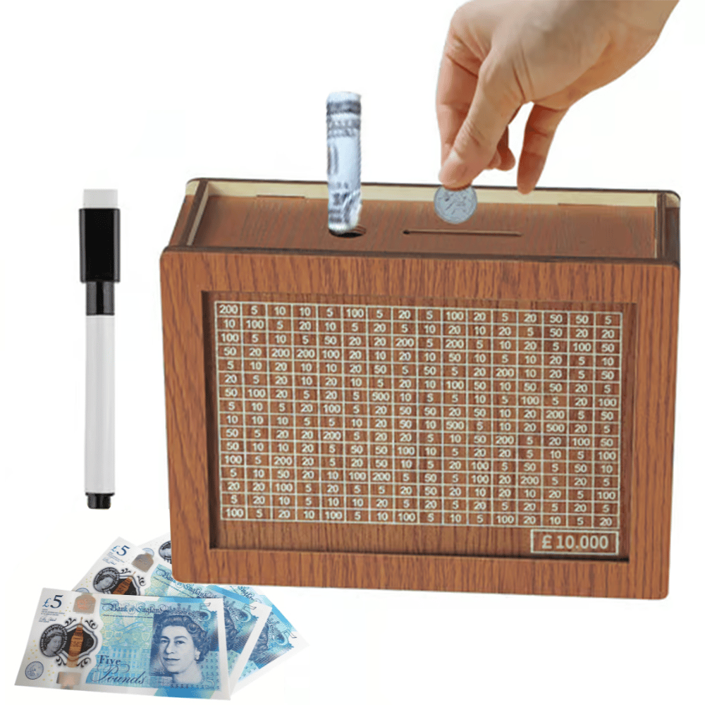 Diese aus Holz gefertigte Spardose zeichnet sich durch ein einzigartiges Zähl-Design aus, das sie von anderen Sparbüchsen auf dem Markt abhebt.💸